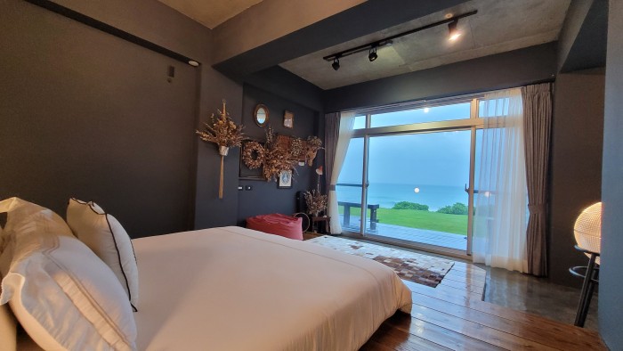 房間最大的特點就是:一進來你可以看到2大面超大落地窗,看出去直接將無敵的太平洋海景收進視線,接著你可以放聲納喊加尖叫聲!當然你也可以選擇坐下來冷靜一下,民宿主人很貼心的準備一張皮革製的懶骨頭座椅,讓你尖叫納喊完,冷靜坐下來看窗外海景用的XXDDDDDDDD